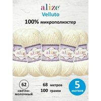 Купить Пряжа для вязания ALIZE ‘Velluto’, 100г, 68м (100% микрополиэстер) (62 светло-молочный), 5 мотков с доставкой по всей России.