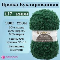 Купить Пряжа для вязания Пехорка Буклированная, цвет 117 киви, 200г, 220м, 5шт/упак с доставкой по всей России.