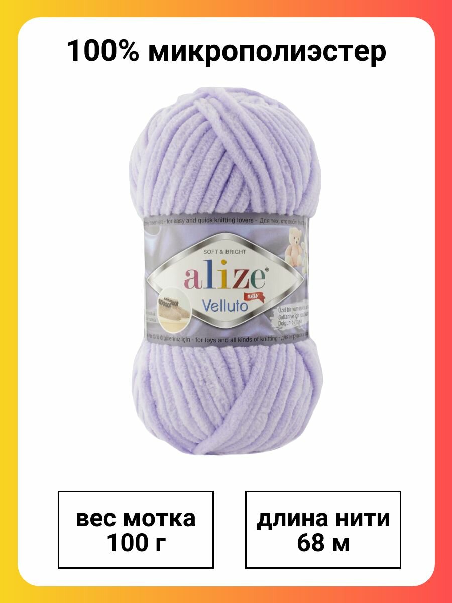 Купить Пряжа для вязания плюшевая Alize Velluto, цвет 146 лаванда, 100г, 68м, 5шт/упак с доставкой по всей России.