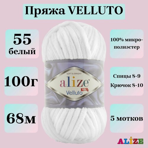 Пряжа для вязания плюшевая Alize Velluto, цвет 55 белый, 100г, 68м, 5шт/упак: сравнение цен, характеристики, фото, актуальное наличие и цены.