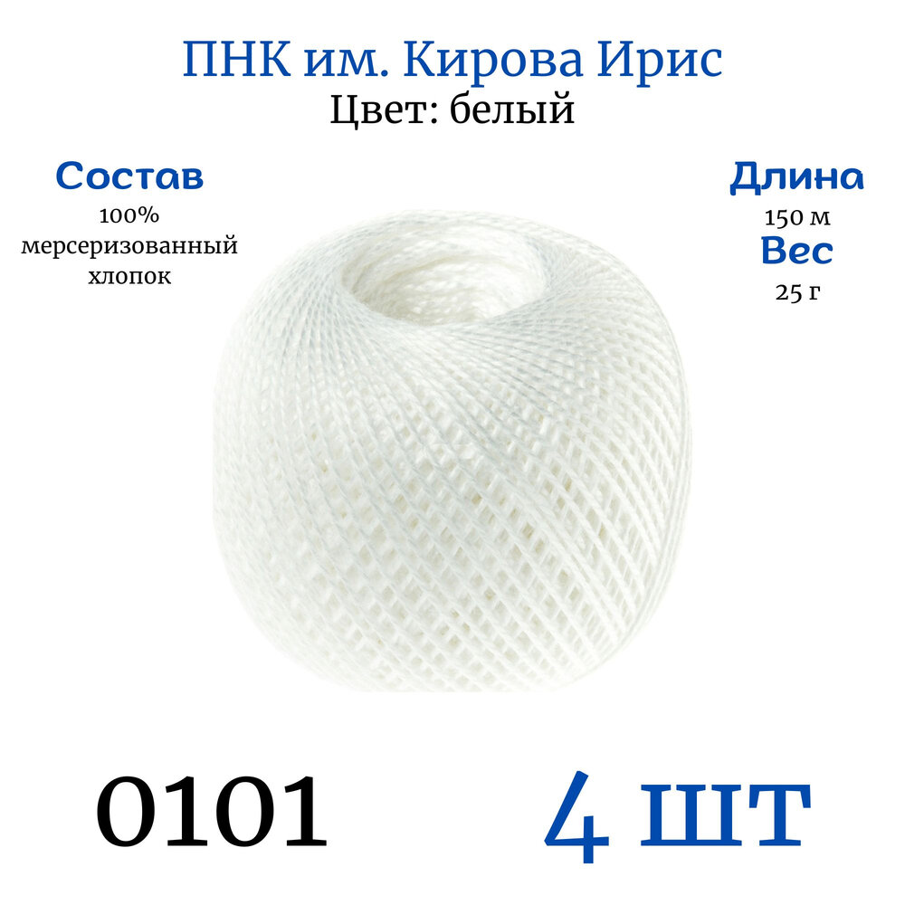 Пряжа для вязания ПНК им. Кирова Ирис 25 гр 0101 белый 4 шт 25 гр/150 м 100% мерсеризованный хлопок: сравнение цен, характеристики, фото, актуальное наличие и цены.