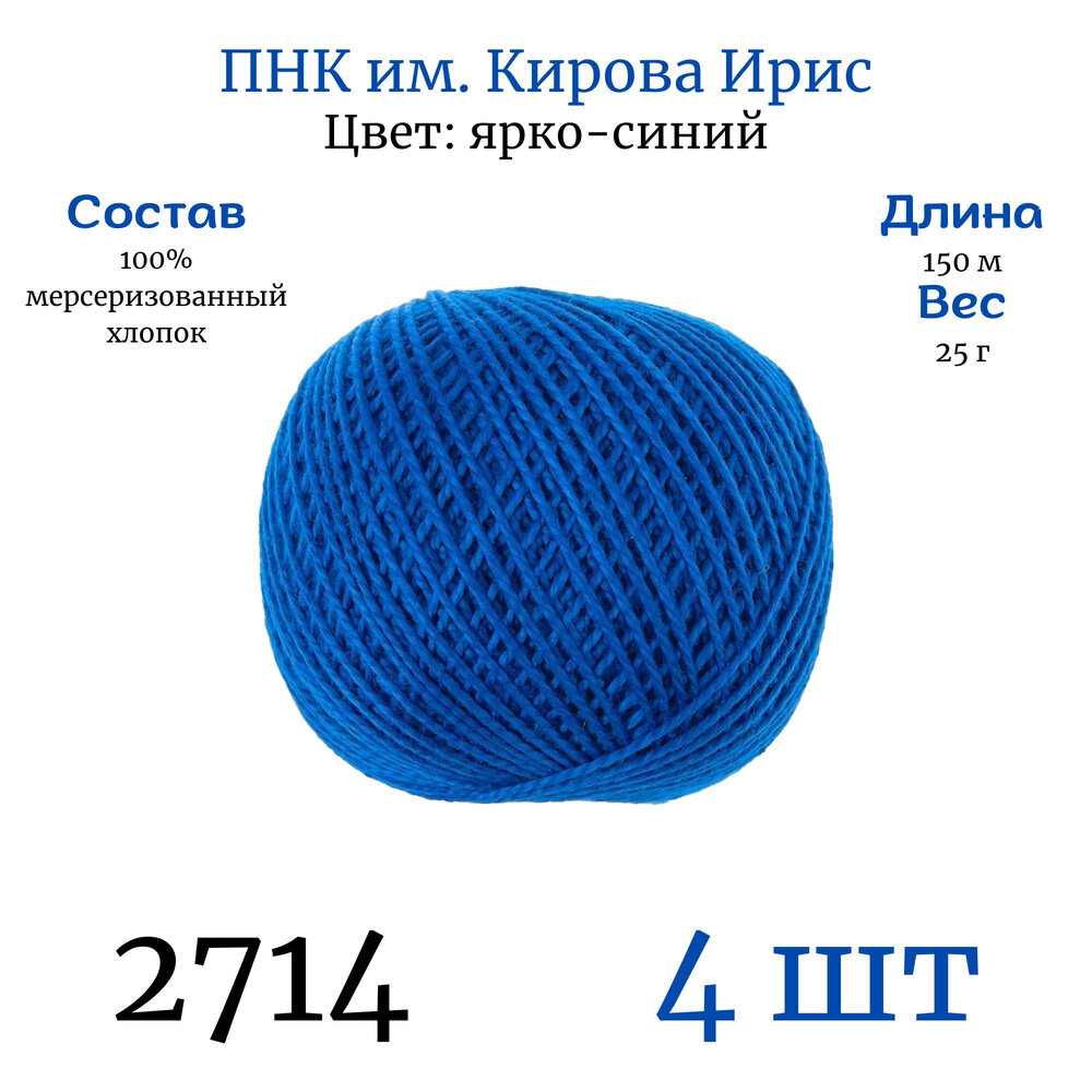 Купить Пряжа для вязания ПНК им. Кирова Ирис 25 гр 2714 ярко-синий 4 шт 25 гр/150 м 100% мерсеризованный хлопок с доставкой по всей России.