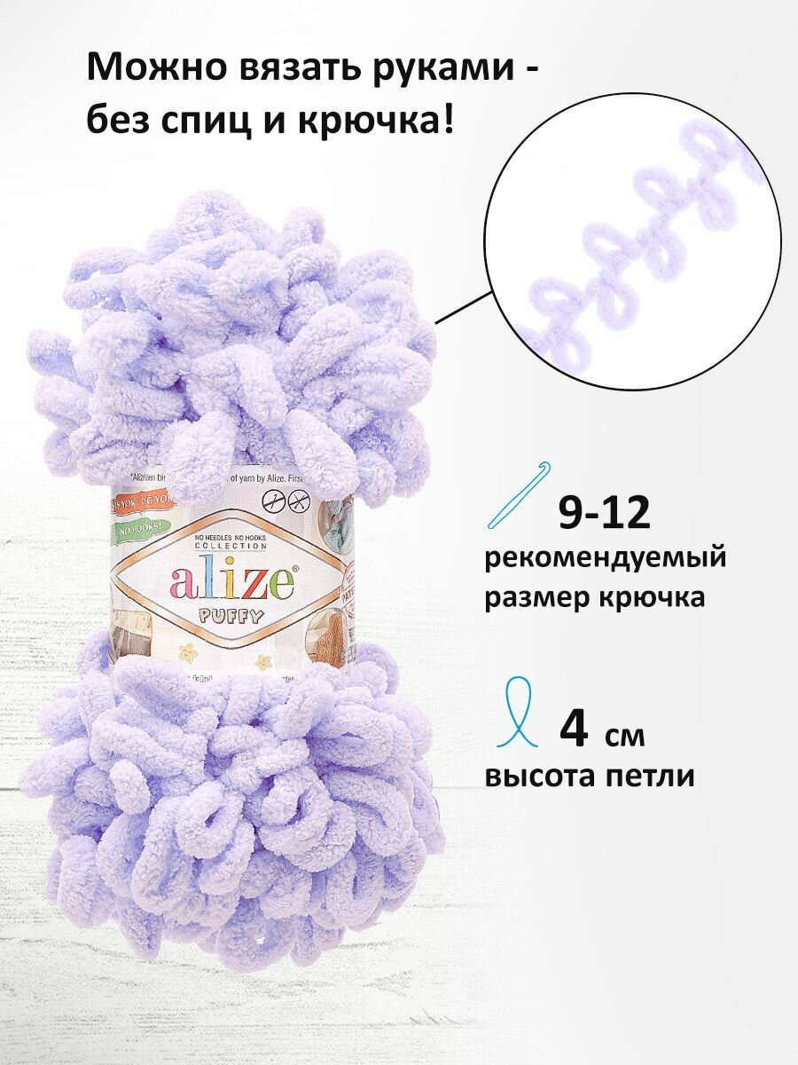 Пряжа для вязания руками с готовыми петлями ALIZE ‘Puffy’ 100г, 9м (146 лаванда), 5 мотков: сравнение цен, характеристики, фото, актуальное наличие и цены.