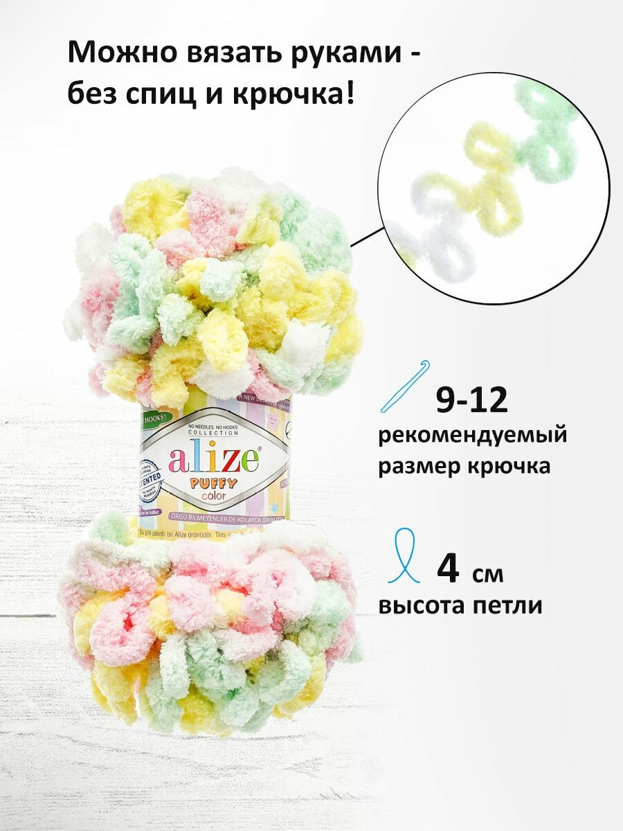 Купить Пряжа для вязания руками с готовыми петлями ALIZE ‘Puffy Color’ 100г, 9м (5862 секционный), 5 мотков с доставкой по всей России.
