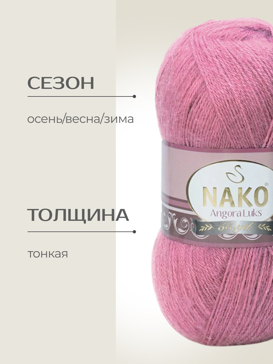 Пряжа для вязания спицами, крючком NAKO Нако «Angora luks (Ангора Люкс)» тонкая, шерсть мохер премиум акрил, цвет: 6682 Светлая брусника, 5 шт. по 100 г, 550 м: сравнение цен, характеристики, фото, актуальное наличие и цены.