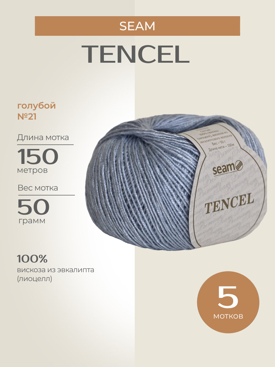 Пряжа для вязания спицами, крючком SEAM «TENCEL Тенсель» классическая тонкая, вискоза из эвкалипта (лиоцелл), цвет: 21 Голубой, 5 шт. 50 г, 168 м: сравнение цен, характеристики, фото, актуальное наличие и цены.