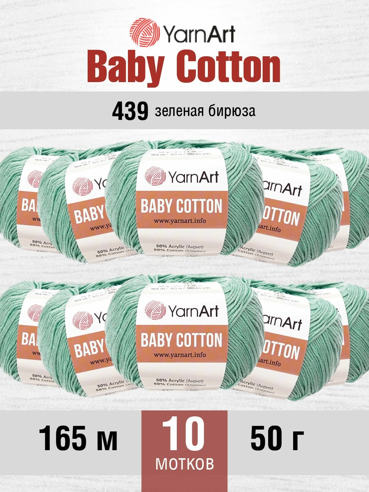 Купить Пряжа для вязания YarnArt ‘Baby Cotton’ 50г, 165м (50% хлопок, 50% акрил) (439 зеленая бирюза), 10 мотков с доставкой по всей России.