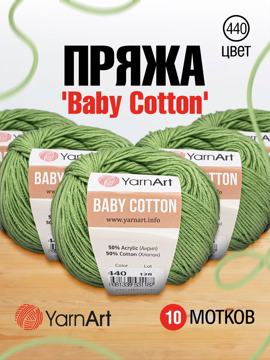 Пряжа для вязания YarnArt Baby Cotton 50гр 165 м хлопок акрил детская 10 мотков 440 зеленый: сравнение цен, характеристики, фото, актуальное наличие и цены.