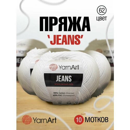 Купить Пряжа для вязания YarnArt ‘Jeans’ 50г, 160м (55% хлопок, 45% полиакрил) (62 белоснежно-белый), 10 мотков с доставкой по всей России.