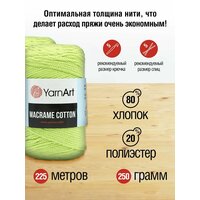 Пряжа для вязания YarnArt ‘Macrame Cotton’ 250г, 225м (80% хлопок, 20% полиэстер) (755 светло-зеленый), 4 мотка: сравнение цен, характеристики, фото, актуальное наличие и цены.