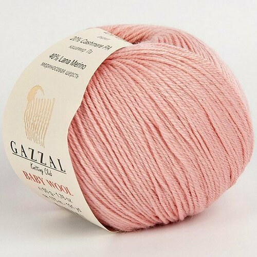 Пряжа для вязания Газзал Беби вул (Gazzal Baby wool), 40% меринос - 40% акрил - 20% кашемир ПА, 50 гр * 175 м, в упаковке 5 мотков одного цвета. Рекомендуемый размер спиц/крючка 3 мм. Мягкая, упругая нить, не колется, подходит для малышей. В полотне стабильная, хорошо держит косы, араны, приятна к телу, хорошо переносит деликатную машинную стирку, не деформируется.