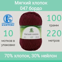 Купить Пряжа Камтекс Мягкий хлопок цвет 047 бордо (100г/220м, упаковка 10 мотков) с доставкой по всей России.