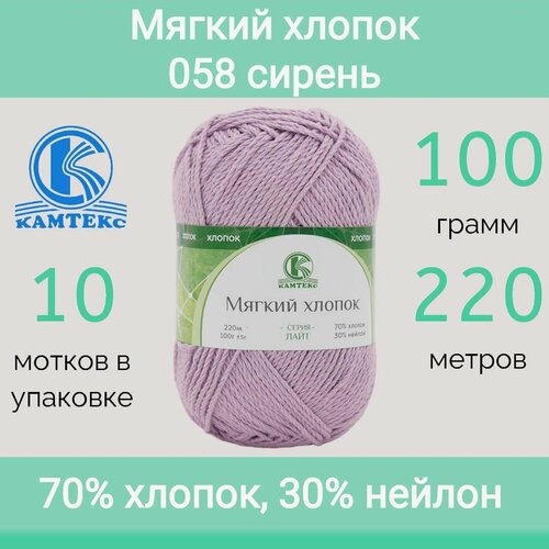 Купить Пряжа Камтекс Мягкий хлопок цвет 058 сирень (100г/220м, упаковка 10 мотков) с доставкой по всей России. Пряжа Камтекс Мягкий хлопок цвет 058 сирень (100г/220м, упаковка 10 мотков): сравнение цен, характеристики, фото, актуальное наличие и цены.