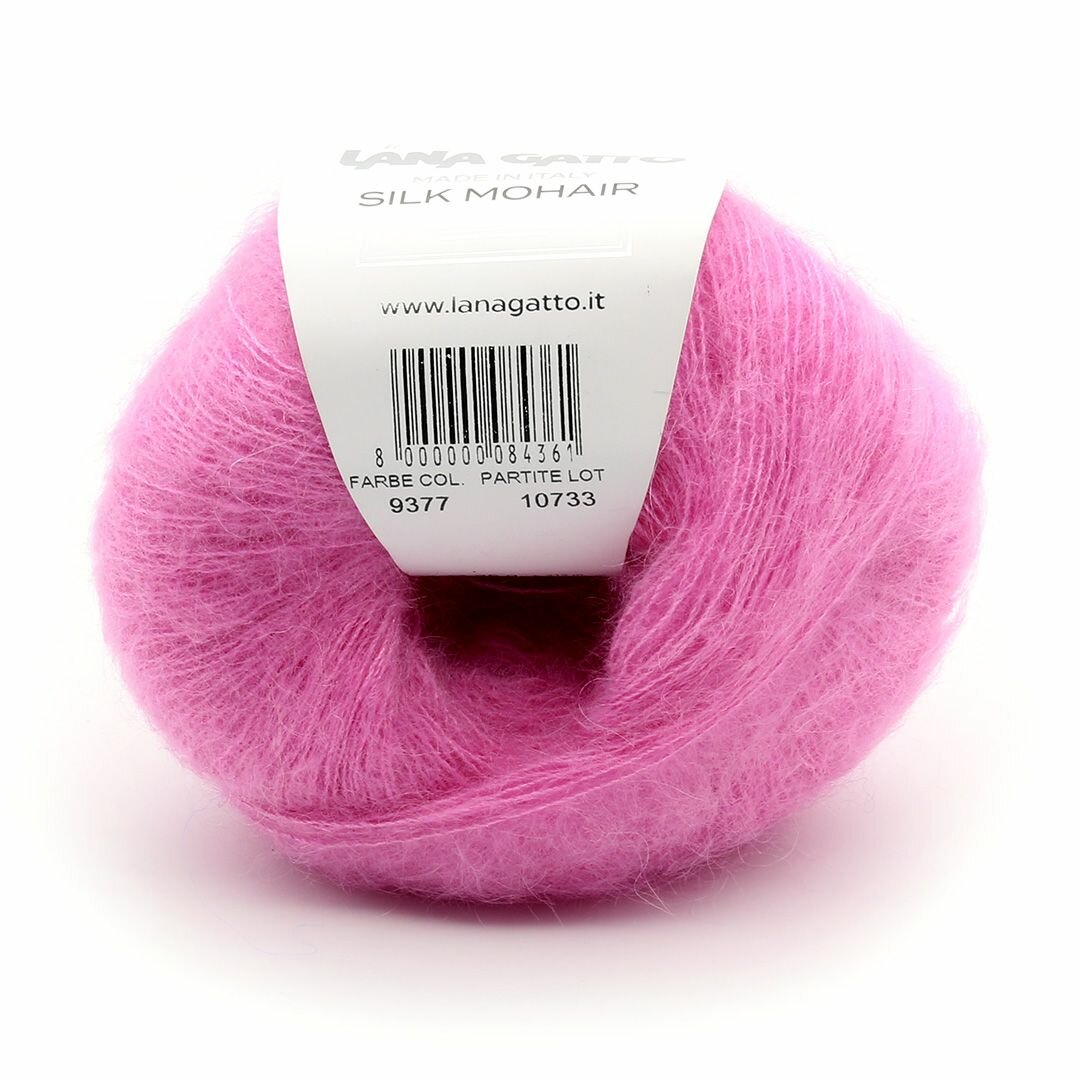 Купить Пряжа Lana Gatto Silk Mohair /Лана Гатто Силк Мохер / цвет: 9377, FUXIA / светлый ярко-розовый (2 мотка) с доставкой по всей России.