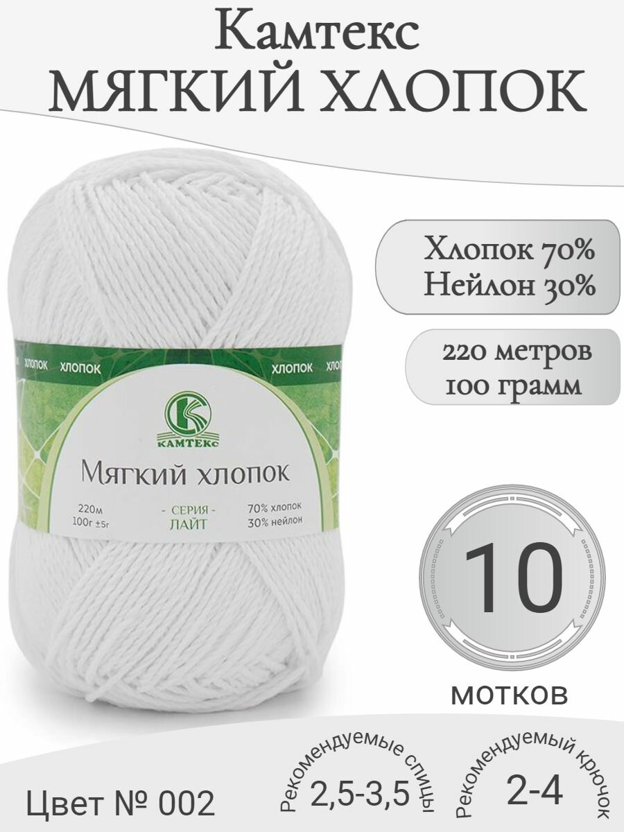 Купить Пряжа Мягкий хлопок Камтекс, 002-отбелка (10 мот) с доставкой по всей России. Пряжа Мягкий хлопок Камтекс, 002-отбелка (10 мот): сравнение цен, характеристики, фото, актуальное наличие и цены.