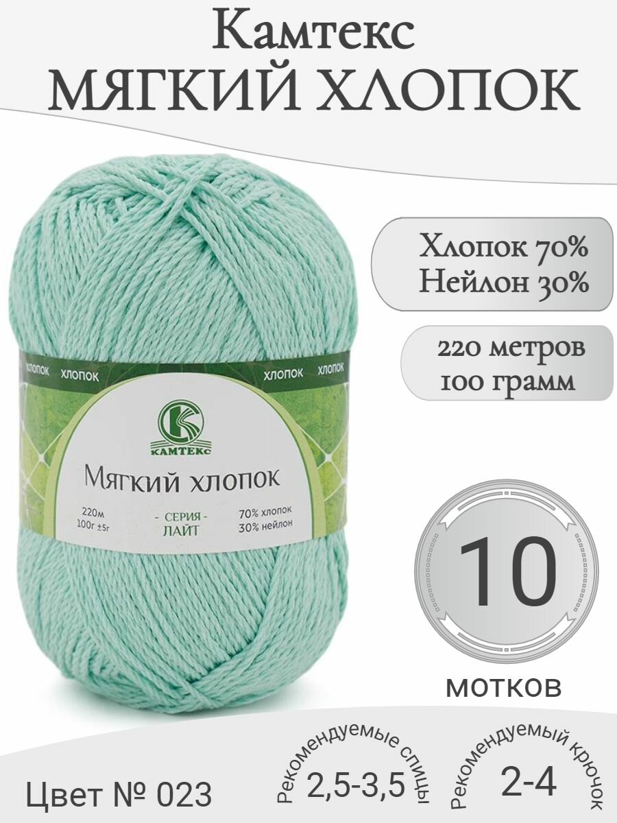 Купить Пряжа Мягкий хлопок Камтекс, 023-бирюзовый светлый (10 мот) с доставкой по всей России. Пряжа Мягкий хлопок Камтекс, 023-бирюзовый светлый (10 мот): сравнение цен, характеристики, фото, актуальное наличие и цены.
