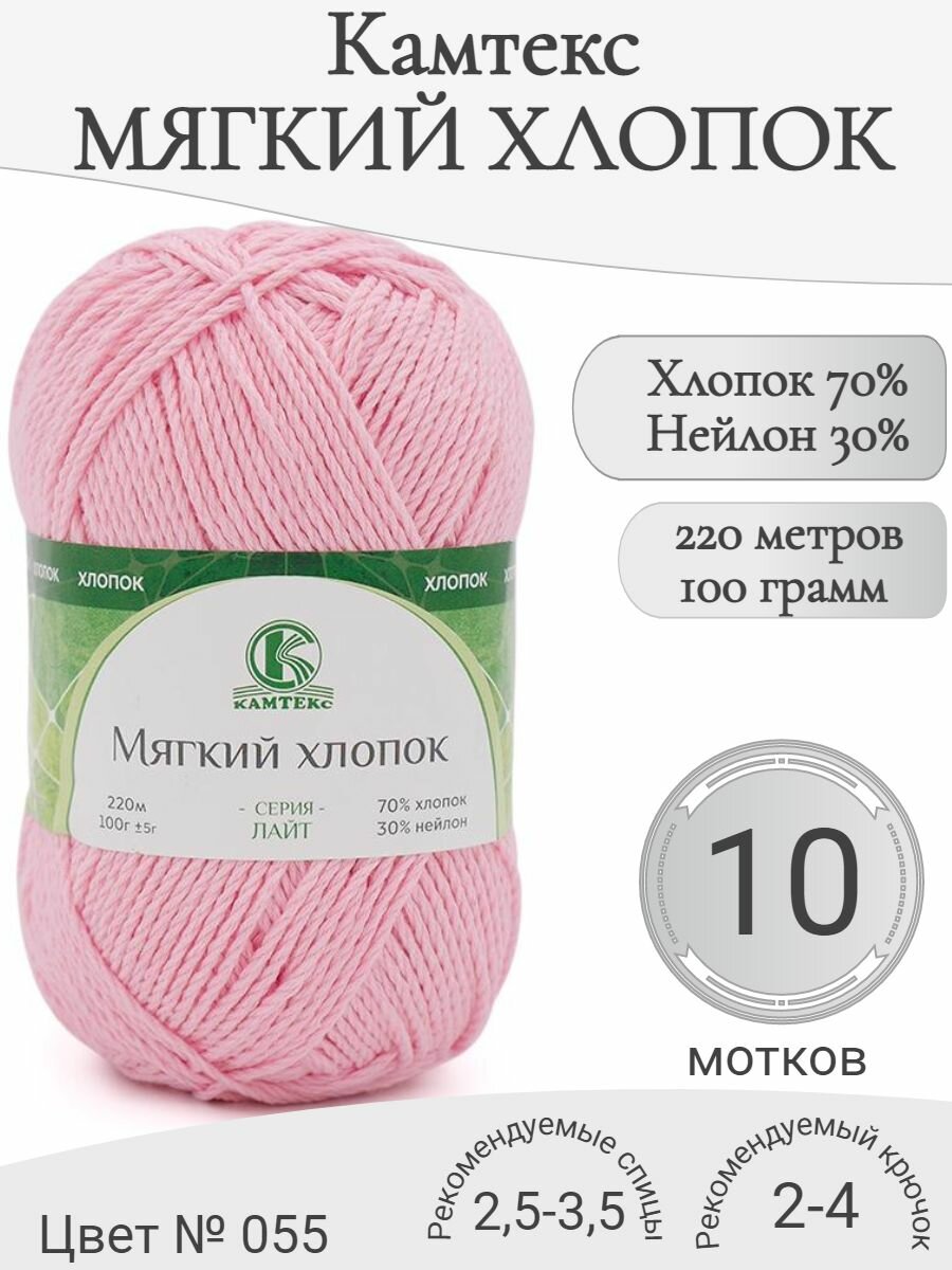 Купить Пряжа Мягкий хлопок Камтекс, 055-розовый светлый (10 мот) с доставкой по всей России. Пряжа Мягкий хлопок Камтекс, 055-розовый светлый (10 мот): сравнение цен, характеристики, фото, актуальное наличие и цены.