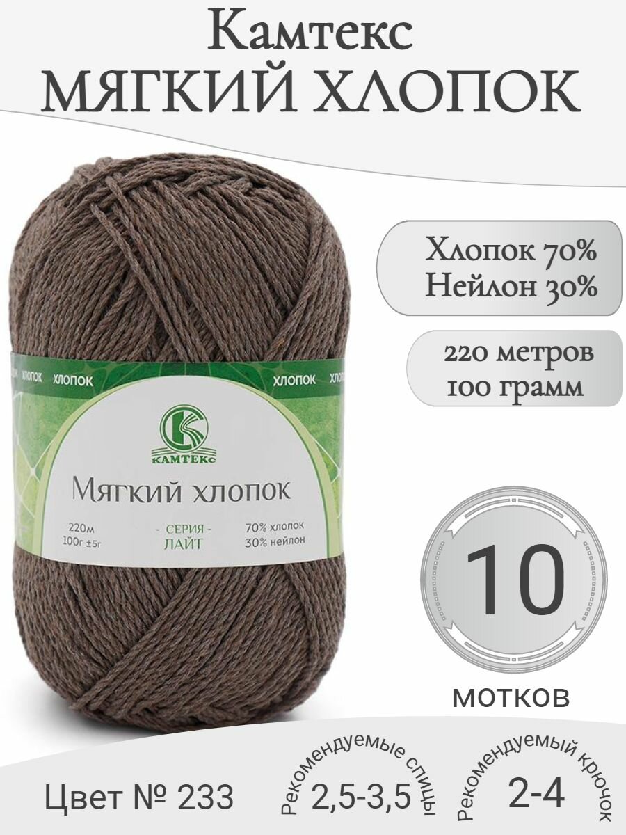 Купить Пряжа Мягкий хлопок Камтекс, 233-кофе (10 мот) с доставкой по всей России. Пряжа Мягкий хлопок Камтекс, 233-кофе (10 мот): сравнение цен, характеристики, фото, актуальное наличие и цены.