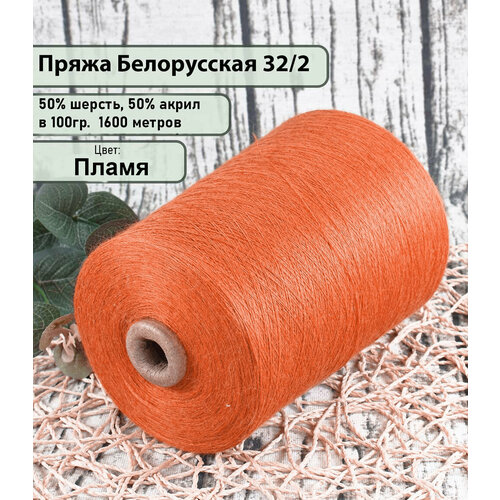 Купить Пряжа на бобине 50% шерсть, 50% акрил, 100гр./1600мет, цв. Пламя (450гр) с доставкой по всей России.