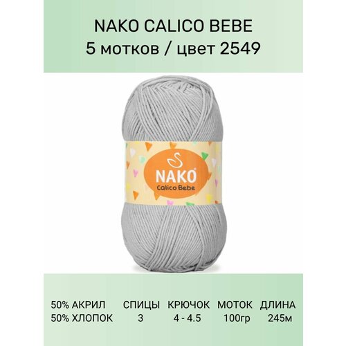 Купить Пряжа Nako Calico Bebe: 2549 (св. серый), 5 шт 245 м 100 г 50% премиум акрил, 50% хлопок с доставкой по всей России. Пряжа Nako Calico Bebe: 2549 (св. серый), 5 шт 245 м 100 г 50% премиум акрил, 50% хлопок: сравнение цен, характеристики, фото, актуальное наличие и цены.
