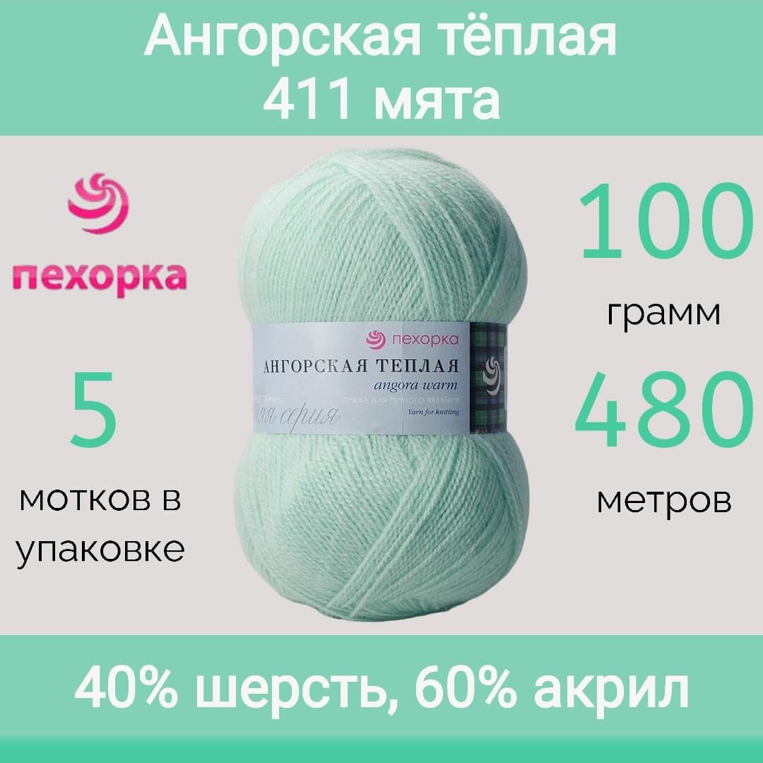 Пряжа "Ангорская теплая", ТМ Пехорский текстиль. Для вязания предметов одежды и аксессуаров. Сезон: Демисезон. "Ангорская теплая" интересна тем, что при достаточно тонкой, легкой фактуре нити в изделиях выглядит довольно объемно. Поэтому из нее можно связать легкий кардиган, благородный жакет, роскошные кофты, свитеры, пуловеры, воздушные болеро, легкие шали, шикарные палантины. Хороша она в шапочках, рукавичках, гетрах, носочках. Уже при первом прикосновении к пряже появляется понимание, что в вещах из нее будет тепло, уютно, легко и, конечно, красиво! Пряжа невероятно мягкая, нежная. Поэтому ее смело можно использовать для детского гардероба. При переработке ангорской шерсти было добавлено искусственное волокно - акрил. За счет акрила изделия держат форму после стирок и отличаются износостойкостью. На изделиях из этой пряжи не образуются катышки. Цветовая палитра довольно богатая: в большинстве своем оттенки нежные и спокойные. Из-за того, что пряжа - очень гигроскопичный товар, она легко набирает и легко отдаёт влагу. Указанный на мотке вес - это так называемый "кондиционный" вес. Нормативная влажность пряжи - 18,25%, а реальная обычно бывает меньше - 14-15%. Поэтому, при взвешивании пряжи в "обычных" комнатных условиях, данные по весу могут отличаться от указанных на мотке. Контрольное взвешивание, при определенной влажности и температуре, должно проводиться только в спец. лабораториях. Претензии по весу принимаются только при наличии официального заключения лабораторий, либо при очевидной разнице - более 30%. Тип пряжи: Классическая. Цветовая палитра: однотонные цвета. Толщина нити: тонкая. Длина нити: 480 м Вес: 100 г. Состав: 60% акрил, 40% шерсть. Рекомендуемый диаметр спиц/крючка для пряжи - 2.0-2.5 мм. Внимание: Цвет и оттенок товара на прилагаемой фотографии могут незначительно отличаться от оригинала продукции, в зависимости от разрешения и настроек Вашего монитора, а также условий освещения при съемке.