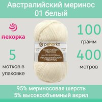 Пряжа Пехорка Австралийский меринос цвет 01 белый (100г/400м, упаковка 5 мотков): сравнение цен, характеристики, фото, актуальное наличие и цены.