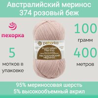 Пряжа Пехорка Австралийский меринос цвет 374 розовый беж (100г/400м, упаковка 5 мотков): сравнение цен, характеристики, фото, актуальное наличие и цены.
