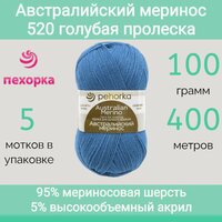 Купить Пряжа Пехорка Австралийский меринос цвет 520 голубая пролеска (100г/400м, упаковка 5 мотков) с доставкой по всей России.