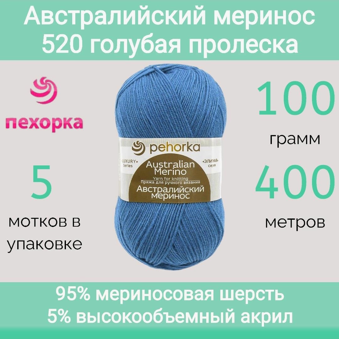 Пряжа Пехорка Австралийский меринос цвет 520 голубая пролеска (100г/400м, упаковка 5 мотков): сравнение цен, характеристики, фото, актуальное наличие и цены.