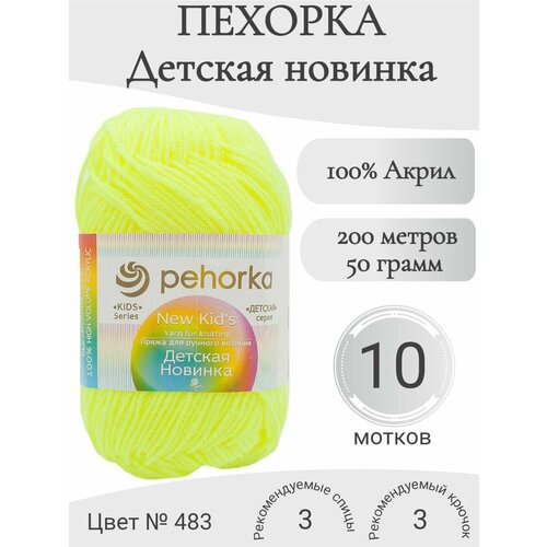 Пехорка Детская новинка – пряжа из 100% высокообъемного акрила. Предназначена для ручной вязки на спицах или крючком. Нитка плотно скручена, не путается, без узелков. Петли ложатся аккуратно, ровно, что придает готовому изделию идеальный фабричный внешний вид. Пряжа очень нежная, мягкая, приятная на ощупь. Гипоаллергенна. Благодаря своему уникальному составу пряжа отличается повышенной износостойкостью, не растягивается, не выгорает на солнце, а значит, готовые изделия надолго сохранят свой первозданный вид даже после многочисленных стирок, не скатаются в процессе эксплуатации.