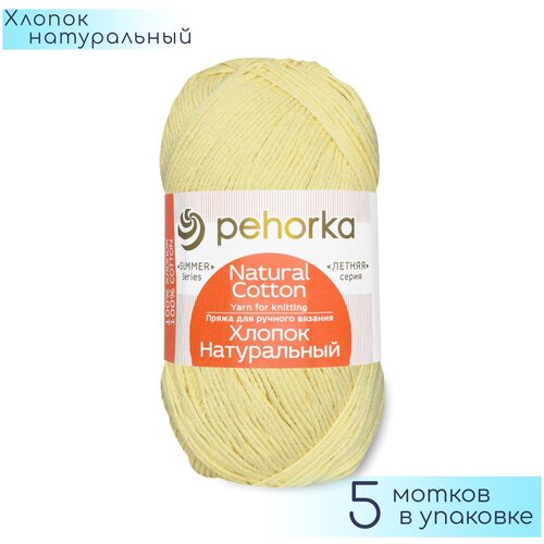 Пряжа Пехорка Хлопок натуральный светло-желтый (053), 100%хлопок, 425м, 100г, 5шт