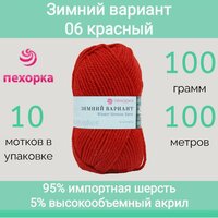 Купить Пряжа Пехорка Зимний вариант цвет 06 красный (100г/100м, упаковка 10 мотков) с доставкой по всей России.