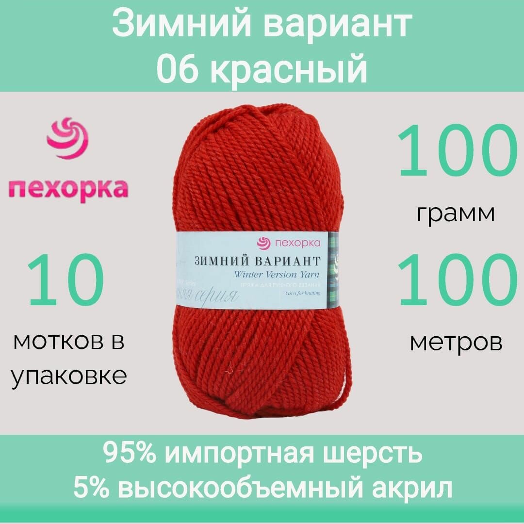 Пряжа Пехорка Зимний вариант цвет 06 красный (100г/100м, упаковка 10 мотков): сравнение цен, характеристики, фото, актуальное наличие и цены.