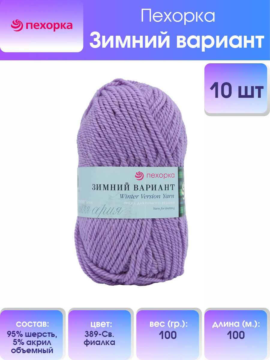 Пряжа для вязания Пехорка ‘Зимний вариант’ 100г, 100м (шерсть, акрил объемный) (389-Светлая фиалка), 10 мотков: сравнение цен, характеристики, фото, актуальное наличие и цены.