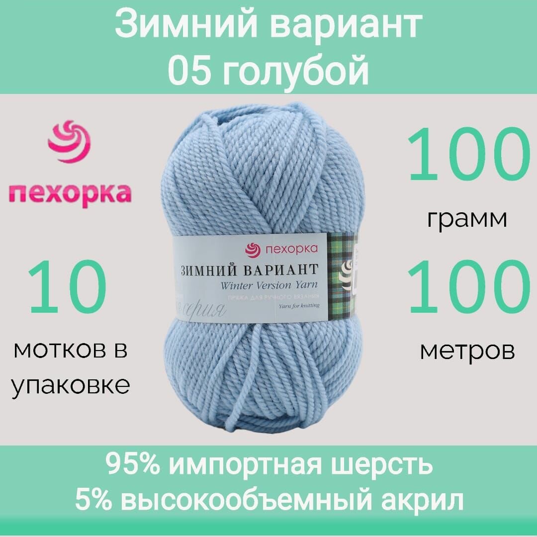 Купить Пряжа Пехорка Зимний вариант цвет 05 голубой (100г/100м, упаковка 10 мотков) с доставкой по всей России.