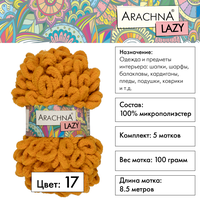 Пряжа плюшевая ARACHNA «LAZY» 5 шт. х 100 г 8.5 м 100% микрополиэстер №17 горчичный