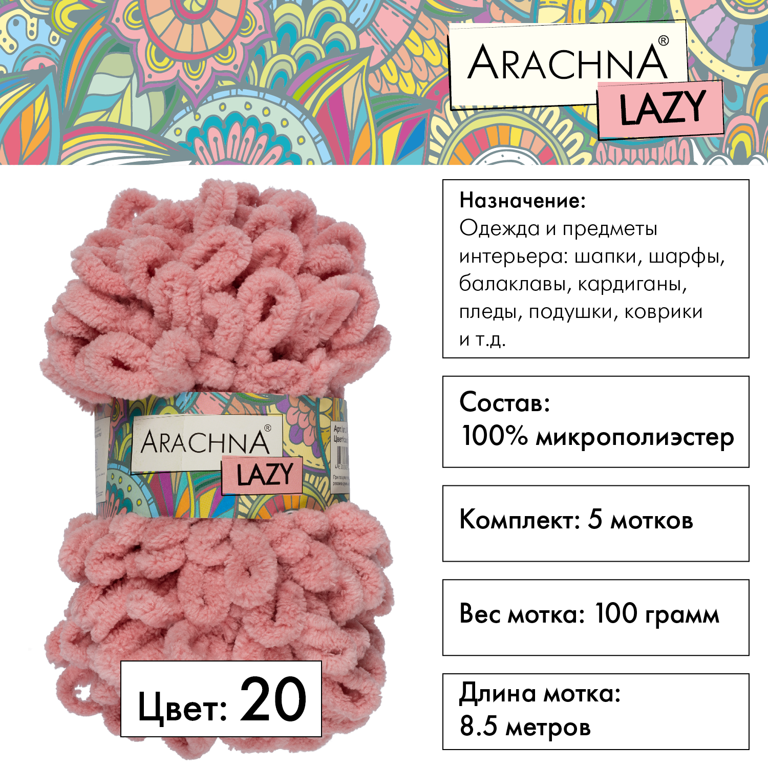 Пряжа ARACHNA "LAZY" используется для вязания различных аксессуаров и предметов интерьера. Фантазийная, плюшевая пряжа. Нить выглядит как ряд петель. Благодаря объемной нити всего за несколько часов можно связать мягкие и комфортные пледы, покрывала, шапки, снуды, кардиганы и игрушки. Для вязания петельной пряжи не требуются спицы или крючок, поскольку пряжа вяжется руками. Уход за готовым изделием: ручная стирка t-30, не гладить, щадящий режим химчистки, не отбеливать, не сушить в барабанной сушилке. Для достижения наилучшего результата в одной работе рекомендуется использовать нитки из одной партии "lot", который указан на этикетке. Тип пряжи: ФантазийнаяЦветовая палитра: классические цвета - белый / черный, бежевый, серый, голубой, розовый и др, цвета из актуального тренда - сливочный, античная роза, джинсовый, оливковый и др. В полотне 10х10 см - 4 ряда по 6 петель - лицевая гладьПримечание: цвет товара может отличаться от цвета фото. Упаковка: 5 шт х 100 гПолиэтиленовый прозрачный пакет с прочно запаянным термошвом, с оптовой этикеткой с штрихкодом. Данный вид упаковки удобен при транспортировке и экономит место при хранении. Прозрачность позволяет оценить товарный вид и качество пряжи до вскрытия упаковки. Изделия из пряжи ТМ Arachna привлекут внимание даже самой искушенной рукодельницы. Благодаря разнообразным способам скрутки нитей пряжа идеально подходит для создания нестандартных предметов декора, оригинальных аксессуаров и украшений, плетения и обвязки различных заготовок. В составе пряжи содержатся как натуральные волокна, поэтому изделия служат дольше и сохраняют форму. Оптимальная толщина пряжи и палитра насыщенных цветов представляет неограниченный простор для ваших новых идей и позволит сделать вязаный аксессуар неотъемлемой частью любого интерьера или образа. Артикул: "LAZY"Вес упаковки, кг: 0.54Вес, г: 100Длина нити, м: 8.5Количество в упаковке: 5Марка: "ARACHNA"Толщина нити: толстаяСостав: 100% микрополиэстерОсобенность: плюшеваяРазмер крючка: вязание рукамиРазмер спиц: вязание рукамиСезон: Все сезоныСостав: 100% микрополиэстерТип окраски: однотоннаяТип пряжи: фантазийнаяТип товара: ПряжаТип упаковки: мотокТолщина нити: толстая