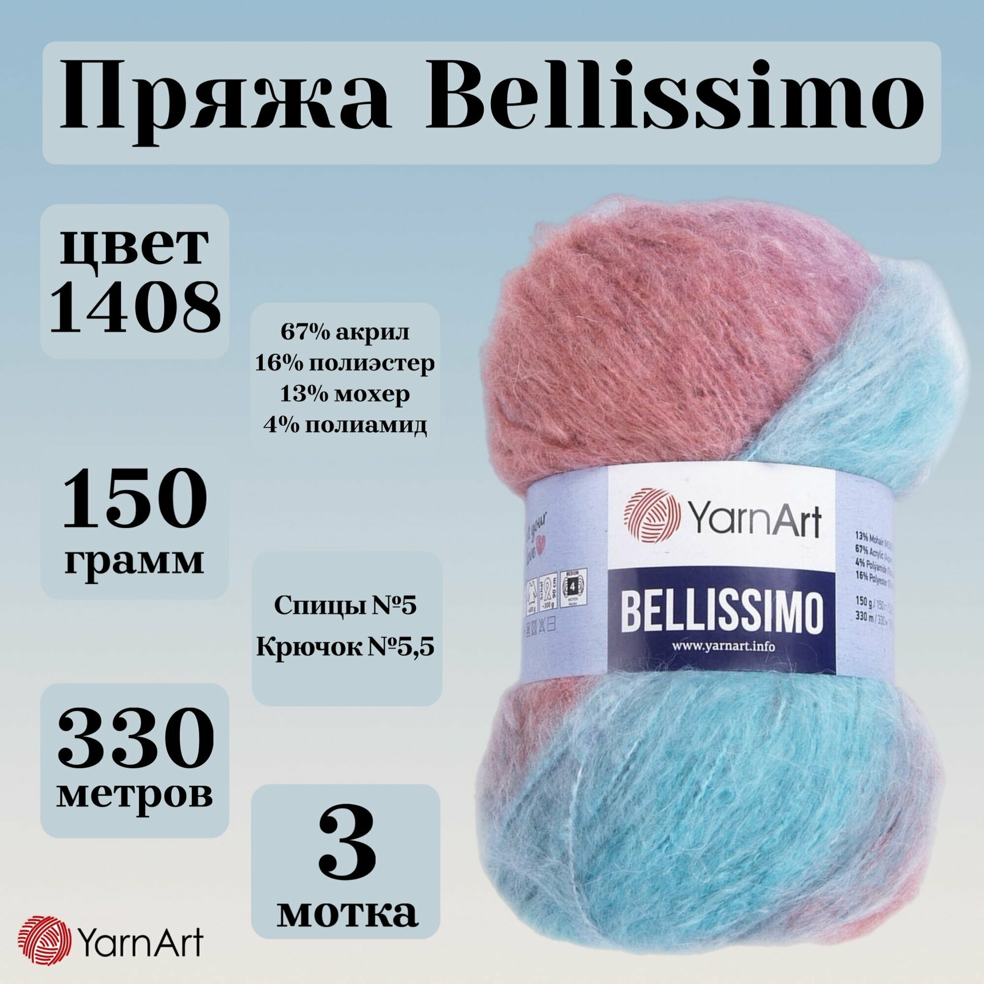 Купить Пряжа для вязания YarnArt Bellissimo, цвет 1408, моток 150г, 330м, 3 мотка с доставкой по всей России.
