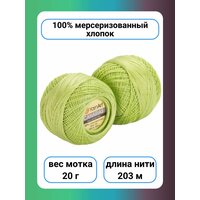 Цвет : Зелёный Длина, м : 203 Вес, г : 20 Сезон : Лето Вид пряжи : Для ручного вязания Серия : Классическая Спицы, № : 2 - 2.25 Структура : Классическая Назначение : Для купальников Назначение : Для блузок, маек Назначение : Для салфеток, кружева Состав : Хлопок мерсеризованный 100% Примечание : Оттенок данного товара может незначительно отличаться от фото/видеоизображения (в зависимости от настроек яркости вашего экрана). Примечание : Оттенок товара может отличаться в зависимости от партии поставки.