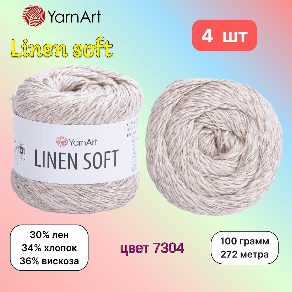 Купить Пряжа YarnArt Linen soft Светло-бежевый (7304) 4 мотка 100 г/272 м (30% лен/36% вискоза/34% хлопок) ярнарт линен софт однотонная с доставкой по всей России.