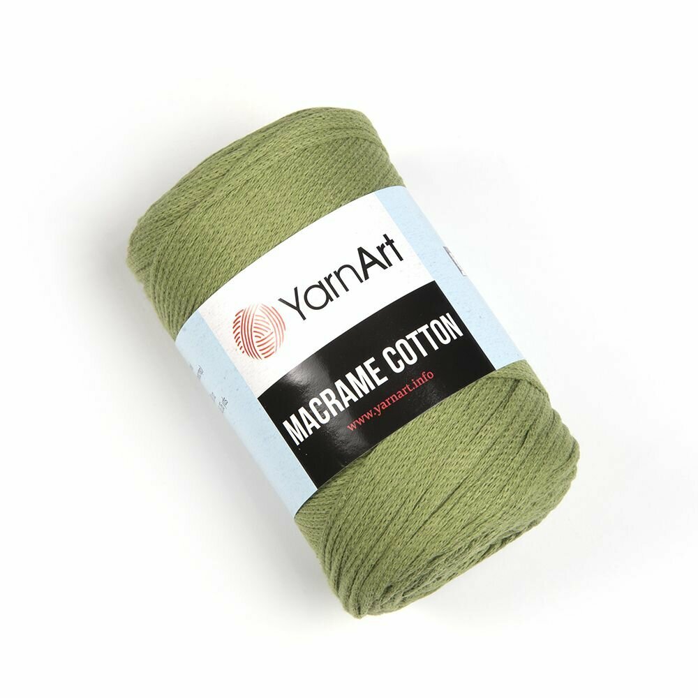 Пряжа YarnArt Macrame Cotton это хлопковая пряжа с небольшим добавлением полиэстра, имеющая плотную и жесткую струтуру, что позволяет изделиям хорошо сохранять форму, держать узлы и узоры. Пряжа предназначена для вязания на спицах, крючком, а так же для работы в технике макраме. Используется для вязания сумок, летних аксессуаров, кашпо, тапочек и др. Изделия получаются износостойкими и долго сохраняют хороший внешний вид. Расход пряжи- 2 мотка на сумочку-клатч, 4 мотка на сумку. Состав 80% хлопок, 20% полиэстер.