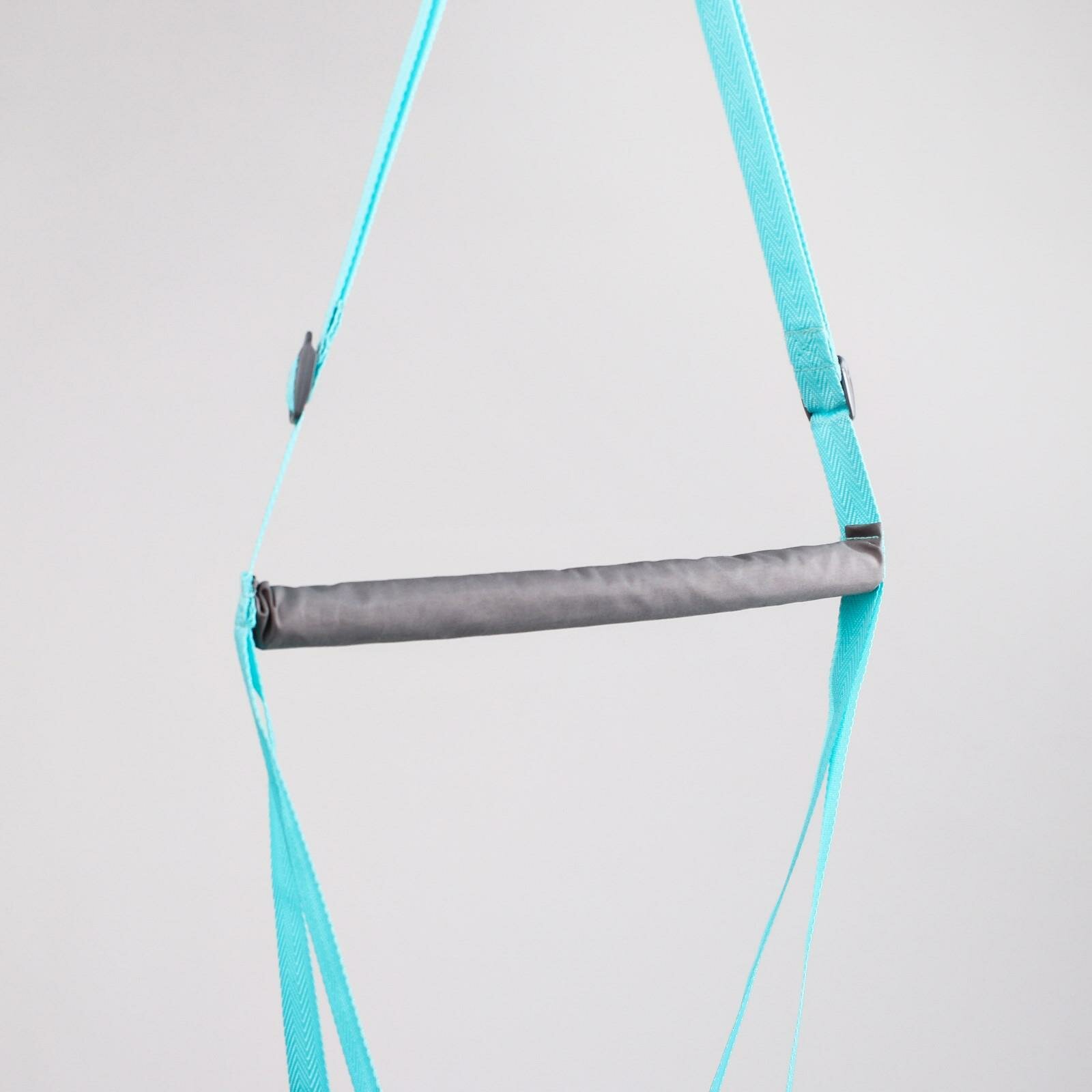 Посадите полугодовалого кроху в сиденье-штанишки. Малышу понравится активная игра, он будет подпрыгивать и качаться. Размер посадочного места можно настроить индивидуально, а за перекладину ребёнку будет удобно держаться.