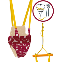 Можно использовать как качели, тарзанку, и по прямому назначению. В набор входят штанишки с авторским рисунком, тарзанка с пружиной, эспандерный шнур для регулировки упругости пружины, крюк для крепления изделия к потолку в одной точке, зацеп для установки прыгунов на косяк двери и удлинительная стропа.