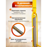 В комплекте идет качельный крюк-саморез и дюбель для потолочного крепления, а также специальный зацеп для установки на дверной косяк. Конструкция прыгунков предусмотрена на максимальную высоту потолка до 220 см. но можно удлинить при помощи стропы из комплекта. Установить бэбитренажер можно в том числе на спорткомплекс или турник.
