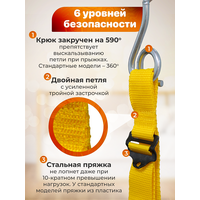 Прыгунки VIP 3в1 это наша самая продвинутая модель. Основные преимущества: специальный зацеп в комплекте, который можно за пару минут установить на дверной короб (косяк) без необходимости сверлить отверстия в стенах или потолке; дополнительная стропа которой можно удлинить конструкцию если не хватило высоты; более плотная х/б ткань с авторским рисунком; прочный пакет с ручкой для переноски и хранения.