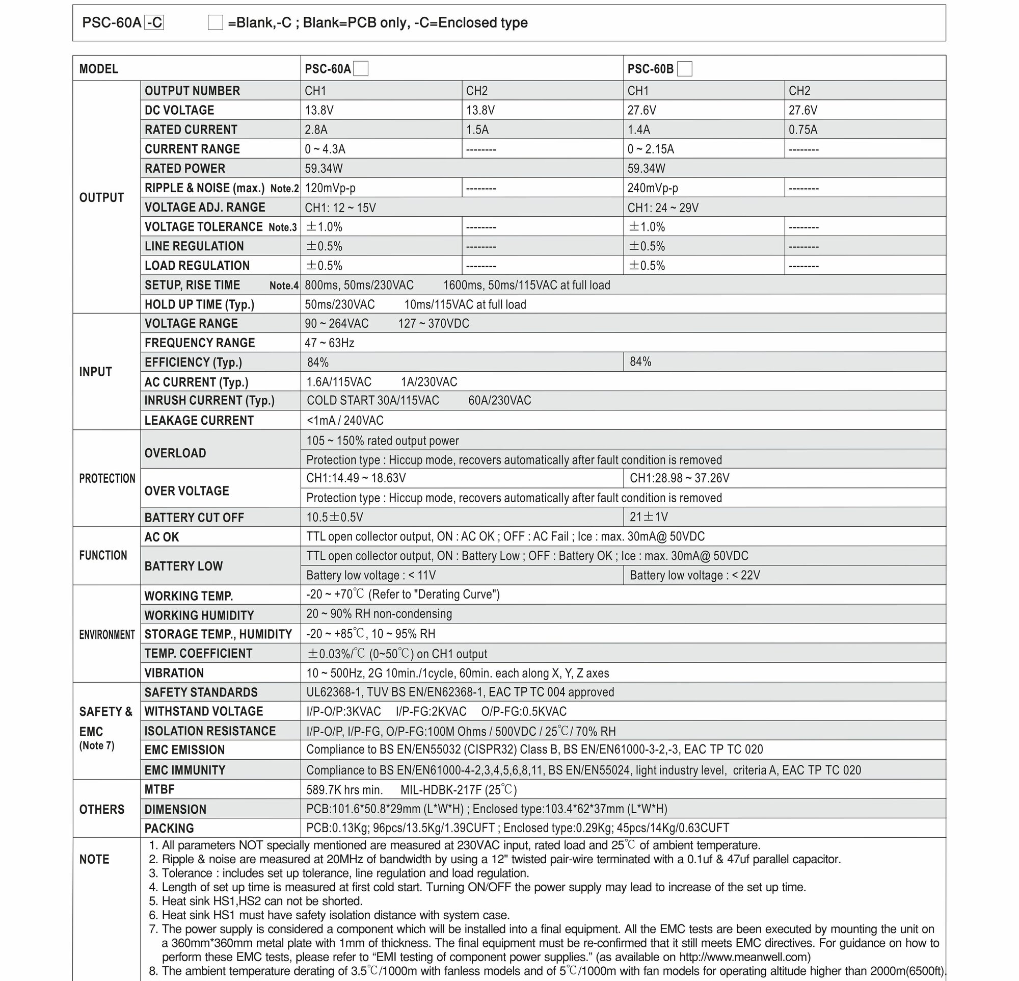 PSC-60A MEAN WELL, ИБП UPS на шасси для охранных систем 60 Вт 13.8 В, 13.8 В: сравнение цен, характеристики, фото, актуальное наличие и цены.