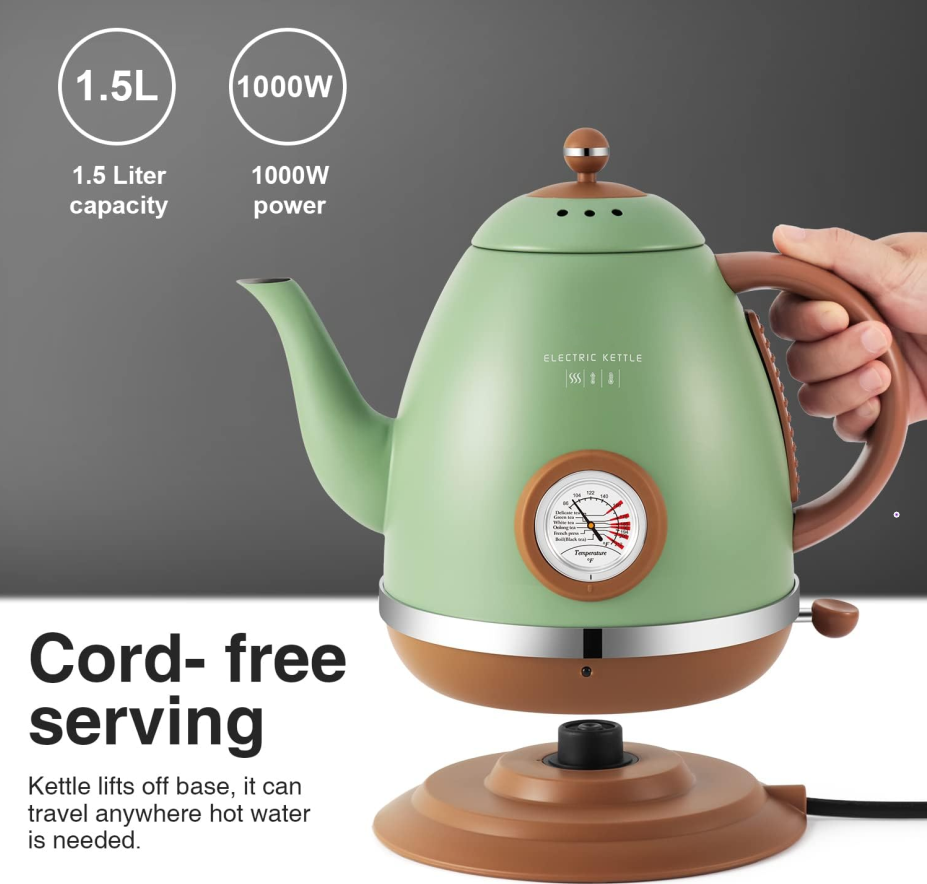 PSE303 электрический чайник объемом 1,5 л, мощностью 1500 Вт, термометр с циферблатом, кофейный чайник с гусиной шеей, быстрое закипание, вращение на 360 градусов, разделение основания, автоматическое отключение, без бисфенола А: сравнение цен, характеристики, фото, актуальное наличие и цены.