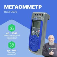 Мегаомметр ПСИ-2530 предназначен для измерения сопротивления изоляции электрических цепей, не находящихся под напряжением, и измерения переменного напряжения до 700 В.