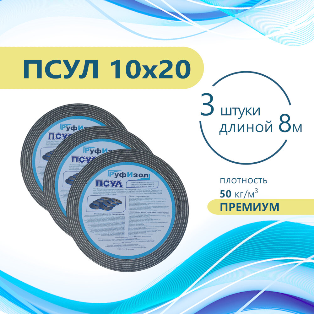 ПСУЛ 10х20 (3 шт по 8 метров) Плотность 50кг. Премиум. (24 метра) Предварительно сжатая самоклеящаяся уплотнительная лента: сравнение цен, характеристики, фото, актуальное наличие и цены.