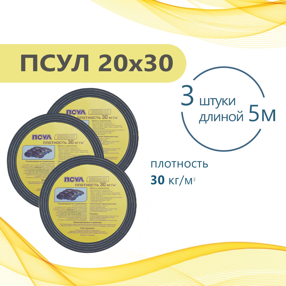 ПСУЛ 20х30 (3 шт по 5 метров). Плотность 30 кг. (15 метров) Предварительно сжатая самоклеящаяся уплотнительная лента: сравнение цен, характеристики, фото, актуальное наличие и цены.